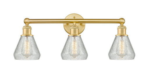 Conesus - 3 Light - 24 inch - Satin Gold - Clear Crackle Shade - Bath Vanity LightDetails:Product Type: Three LightsFinish: Satin GoldShade: Clear ...