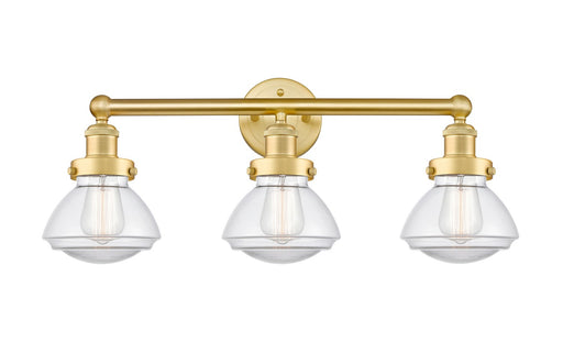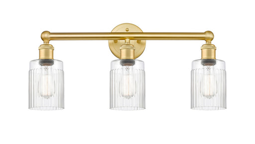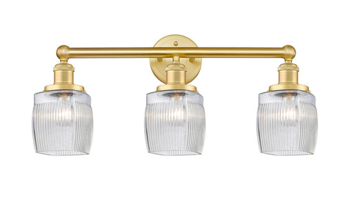 Colton - 3 Light - 24 inch - Satin Gold - Clear Halophane Shade - Bath Vanity LightDetails:Product Type: Three LightsFinish: Satin GoldShade: Thick...