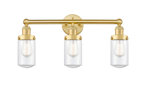Dover - 3 Light - 23 inch - Satin Gold - Clear Shade - Bath Vanity LightDetails:Product Type: Three LightsFinish: Satin GoldShade: Clear DoverRooms...