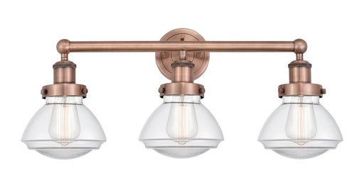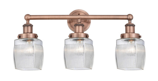 Colton - 3 Light - 24 inch - Antique Copper - Clear Halophane Shade - Bath Vanity LightDetails:Product Type: Three LightsFinish: Antique CopperShad...