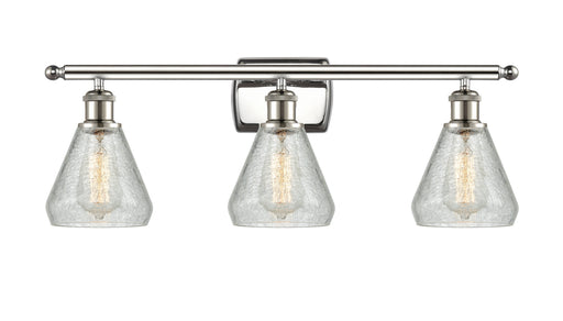 Conesus - 3 Light - 26 inch - Polished Nickel - Clear Crackle Shade - Bath Vanity LightDetails:Product Type: Three LightsFinish: Polished NickelSha...
