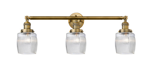 Colton - 3 Light - 32 inch - Brushed Brass - Clear Halophane Shade - Bath Vanity LightDetails:Product Type: Three LightsFinish: Brushed BrassShade:...