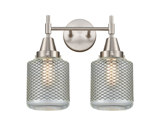 Stanton - 2 Light - 15 inch - Satin Nickel - Clear Wire Mesh Shade - Bath Vanity LightDetails:Product Type: Two LightsFinish: Satin NickelShade: Cl...