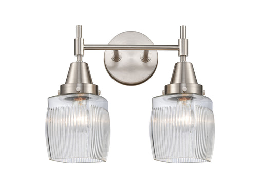 Colton - 2 Light - 15 inch - Satin Nickel - Clear Halophane Shade - Bath Vanity LightDetails:Product Type: Two LightsFinish: Satin NickelShade: Thi...