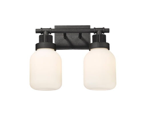 Somers - 2 Light - 15 inch - Textured Black - White Shade - Bath Vanity LightDetails:Product Type: Two LightsFinish: Textured BlackShade: White Som...