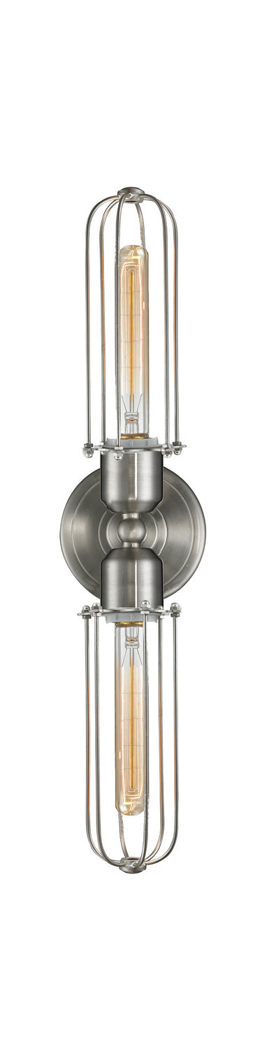 Timeless beauty follows the layered multi-part design of a glass and steel two-light vanity light, a perfect solution for conquering lighting chall...