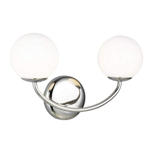 The Galassia two light wall sconce by AERIN in polished nickel perfectly balances a glass globe and curving teardrop frame, giving it a contemporar...
