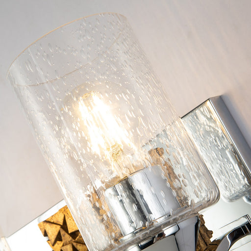 Classic styled 2 light bath light with clear ribbed glass and polished chrome finish. Can be hung up or downwardsDetails:Product Type: Two LightsFi...