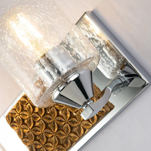 Details:Product Type: Two LightsFinish: Polished ChromeShade: Artisan GlassMeasurements:Width / Dia: 15.50"Height: 9.50"Extension: 5.00"Top to Outl...