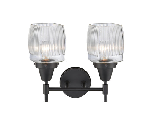 Colton - 2 Light - 15 inch - Matte Black - Clear Halophane Shade - Bath Vanity LightDetails:Product Type: Two LightsFinish: Matte BlackShade: Thick...