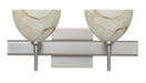 Brella has a classical bell shape that complements aesthetic, while also built for optimal illumination. Our Mocha glass is a pressed glass that features a cream color that is marbleized with brown. This dcor is classic and can be used in various ways. When lit this gives off a light that is functional and soothing. The smooth satin finish on the clear outer layer is a result of an extensive etching process. This handcrafted glass uses a process where every glass is consistently produced using a press mold, keeping variations to a minimum. The vanity fixture is equipped with decorative lamp holders, removable finials, linear rectangular housing, and a removable low profile oval canopy cover. These stylish and functional luminaries are offered in a beautiful Satin Nickel finish.