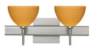 Brella has a classical bell shape that complements aesthetic, while also built for optimal illumination. Our Oak glass is a soft off-white cased glass that is handcrafted with spiraling strokes of light brown, emphasizing the subtle brush pattern. The wood-toned rippled design is subdued and harmonious. Unlit, it appears as simply a textured surface like wood grain, but when lit the texture comes alive. The smooth satin finish on the clear outer layer is a result of an extensive etching process, with the texture of the subtle brushing. This blown glass is handcrafted by a skilled artisan, utilizing century-old techniques passed down from generation to generation. The vanity fixture is equipped with decorative lamp holders, removable finials, linear rectangular housing, and a removable low profile oval canopy cover. These stylish and functional luminaries are offered in a beautiful Satin Nickel finish.