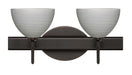 Brella has a classical bell shape that complements aesthetic, while also built for optimal illumination. Our Titan glass is a soft off-white cased glass that is handcrafted with spiraling strokes of silver, emphasizing the subtle brush pattern. The silvery rippled design is subdued and harmonious. Unlit, it appears as simply a textured surface like spun silk, but when lit the texture comes alive. The smooth satin finish on the clear outer layer is a result of an extensive etching process, with the texture of the subtle brushing. This blown glass is handcrafted by a skilled artisan, utilizing century-old techniques passed down from generation to generation. The vanity fixture is equipped with decorative lamp holders, removable finials, linear rectangular housing, and a removable low profile oval canopy cover. These stylish and functional luminaries are offered in a beautiful brushed Bronze finish.