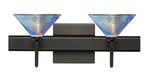 The Kona features a wide cone-shaped glass, that demonstrates contemporary sensibilities. Our Dicro glass is clear blown glass with a technologically advanced dichroic coating applied to the inside. The coating contains multiple micro-layers of metals that create unique optical properties, which effectively alter both the reflected and transmitted light. So unlit, it appears like a mirror, when lit, it becomes translucent with an array of multicolored blue-purple effects. The vanity fixture is equipped with decorative lamp holders, removable finials, linear rectangular housing, and a removable low profile oval canopy cover. These stylish and functional luminaries are offered in a beautiful brushed Bronze finish.