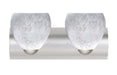The Bolla is a compact handcrafted glass, softly radiused to fit gracefully into contemporary spaces. Our Carrera glass is a classic yet modern dcor that gives off a soft white light. Clear molten glass is rolled in alabaster powder like frit, and then blown into shape with a semi-clear frosted white inner finish. This dcor is created by rolling molten glass in small bits of white called frit. The smooth satin finish on the clear outer layer is a result of an extensive etching process. This blown glass is handcrafted by a skilled artisan, utilizing century-old techniques passed down from generation to generation. Each piece of this dcor has its own artistic nature that can be individually appreciated. The vanity fixture is equipped with sleek arcing die cast lamp holders and matching radiused rectangular canopy. These stylish and functional luminaries are offered in a beautiful Satin Nickel finish.