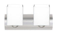 Rise is a simple contemporary design of handcrafted cubed opal. Our Opal glass is a soft white cased glass that can suit any classic or modern decor. Opal has a very tranquil glow that is pleasing in appearance. The smooth satin finish on the clear outer layer is a result of an extensive etching process. This blown glass is handcrafted by a skilled artisan, utilizing century-old techniques passed down from generation to generation. The vanity fixture is equipped with sleek arcing die cast lamp holders and matching radiused rectangular canopy. These stylish and functional luminaries are offered in a beautiful Satin Nickel finish.