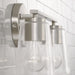 Featuring distinct lines and sleek details, the Portman 2-Light Vanity for HomePlace brings sharp style to any space. The tapered clear glass and Brushed Nickel finish create a classic aesthetic that mixes with any style. Also available in a 3-Light or 4-Light.