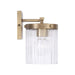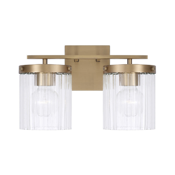 Invite stunning illumination to any powder room with the Vaughn 2-Light Vanity. The Beveled Fluted glass creates captivating texture against the cylindrical silhouettes, while the Aged Brass finish offers a versatile, timeless aesthetic.