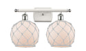 Farmhouse Rope - 2 Light - 18 inch - White Polished Chrome - White Glass with White Rope Shade - Bath Vanity Light