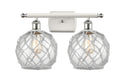 Farmhouse Rope - 2 Light - 18 inch - White Polished Chrome - Clear Glass with White Rope Shade - Bath Vanity Light