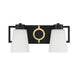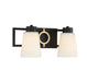 Lighting is the jewelry of the home, which makes this Russo 2-light bath vanity light a beautiful bauble for the bathroom. Attention-grabbing geometric detail is finished in warm brass to pair beautifully with the overall matte black finish. White glass shades ensure bright and even illumination. Russo is 7.25" in height, 15.5" in width and 6.25" in extension. It uses 2 standard size bulbs of up to 60 watts each (bulbs not included). Damp area rated.