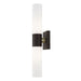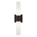 With the sleek contemporary design, the Aero bath bar casts a soft, flattering light which can be mounted horizontally or vertically. The tubular etched opal glass diffuses the light of two lamps.