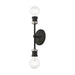 Simplicity and attention to detail are the key elements of the Lansdale collection. The dimensional form, exposed bulbs and combination of finishes adds a playful mood to a contemporary or urban interior. This two-light sconce design gives a new face to a bedroom, hallway or a bathroom vanity. It is shown in a black finish with brushed nickel finish accents.