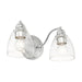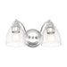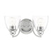Whether it`s style or practical lighting, this vanity sconce is the perfect addition to your bathroom. This two-light fixture from the Montgomery Collection features clear hand-blown glass shades and is shown in a polished chrome finish. The clean graceful lines of the back plate complement the shades, creating an understated look that works well in most decors. Classic elegance combines with contemporary appeal to enhance any home in style.