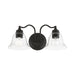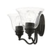 Bring a refined lighting style to your bath area with this Moreland collection two light vanity sconce. Shown in a black finish and clear glass.