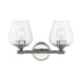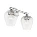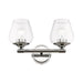 This two light vanity sconce from the willow collection has understated elegance. It features minimal details, clear curved glass with a polished chrome finish and can fit into any decor.