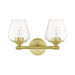 This two light vanity sconce from the willow collection has understated elegance. It features minimal details, clear curved glass with a satin brass finish and can fit into any decor.