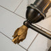 Drawing inspiration from a classic design, this black and gold 2-light vanity light is the perfect pick for any contemporary or traditional space. This Felice design showcases a simple, rectangular 5" square backplate, dome shaped glass shade, and a decorative unique flame-shaped gold finial. Easily installed over your mirror, this two-light sconce is suitable for damp spaces, and is finished in a beautiful matte black.