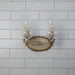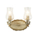 The Trellis 2-Light vanity light is a mix of old and new. With seedy clear glass in the vintage hurricane shape this two-light wall sconces is complemented with a neutral cream and silver oval back plate, and gold and silver orb accents are used to bring a whimsical outdoor feel. Added detailed edging gives depth into gold and brown hues, showing attention to detail, and a fresh new look in bathroom and living room lighting.