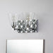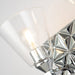 Always looking to add texture and dimension to a room, we created the perfect 2-light wall sconce. The 15.5 inch rectangle back plate with a pressed textured shape creates a modern design completing our intent. Showcasing the elegant polished chrome finish and a sleek cone-shaped, clear shade that can be mounted either up or down, we are giving that extra touch to show our attention to design and our love for the details.
