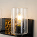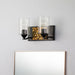 Clean lines and timeless design this double vanity light is perfect for brightening your bathroom space giving it texture and dimension. Featuring a clean-cut rectangle backplate with textured traditional shapes, simple curved arm and a unique two-toned finish of matte black and antique gold. Showing off its contemporary side, this 2-light bathroom light uses a cylinder shaped clear seeded glass to bring attention to the mix of texture and details that come together in our Bocage collection. Measuring 13" Wide, 8" in height and 6.5" in depth, this two-light vanity light can fit in nearly any space.