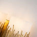 Find the light you love with this graceful and timeless gold leaf double vanity light. The relaxing and spa-like feel of this bathroom fixture, gives a beautiful silhouette and bottom detail, making this the perfect choice to show your on-trend style in your bathroom space. The half drum piece of frosted glass sits perfectly in the gold grass-like holders allowing just the right amount of light to flow into your space. Showing off our attention to details as the light beautifully shines through the bottom design as well as the grass-like shapes. Measuring 15" wide and 6.5" tall with a 5" depth, this 2-light bath bar can be used in any space.