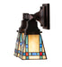 In the Prairie School architectural style tradition, organic objects were interpreted into geometric forms. In this wall sconce, we use colorful interlocking blocks of multi-colored glass in hues of blue/green with accent blocks of blue and burgundy to form stylized wheat stalks on a Beige Cream background. The handcrafted art glass shade is created using the famous Meyda Tiffany copperfoil construction process. Pair the shade with a base to create a stunning table lamp, and match it with hardware to build a beautiful wall or ceiling fixture. Each shade is a unique work of art with color variations based on natural ingredients inherent in the glass.
