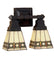 Simple clean lines and geometric shapes are the hallmark of the Mission style. This sleek Bisque Beige stained glass shade features a simple, elegant diamond pattern in Beige accented with Amber, Jade and Peridot borders. The Mission style two light wall sconce hardware in Mahogany Bronze supports shades that are handcrafted using the same technique as the Louis Comfort Tiffany Studio.