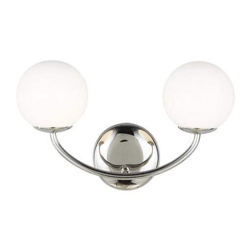 The Galassia two light wall sconce by AERIN in polished nickel perfectly balances a glass globe and curving teardrop frame, giving it a contemporar...