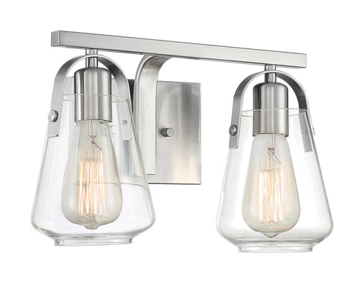 The Sommerset Brushed Nickel two-light vanity sconce features a clear glass shade enclosure with decorative thumb screws. The sleek, streamlined ap...