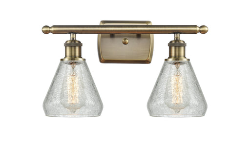 Conesus - 2 Light - 16 inch - Antique Brass - Clear Crackle Shade - Bath Vanity LightDetails:Product Type: Two LightsFinish: Antique BrassShade: Cl...