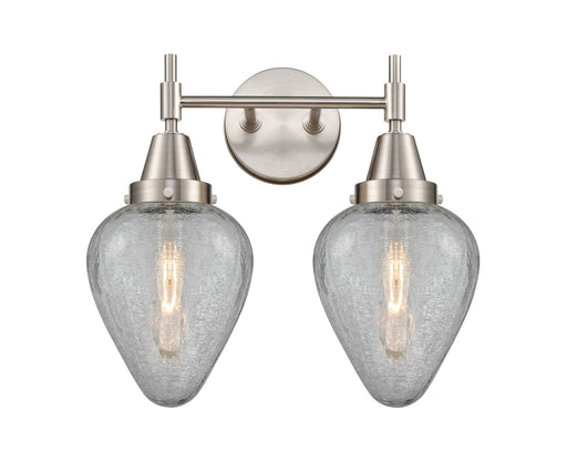 Geneseo - 2 Light - 16 inch - Satin Nickel - Clear Crackled Shade - Bath Vanity LightDetails:Product Type: Two LightsFinish: Satin NickelShade: Cle...