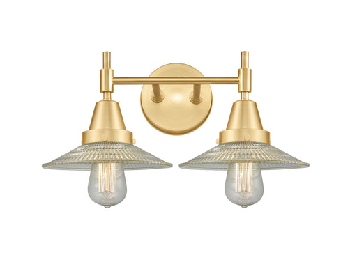 Colton - 2 Light - 15 inch - Satin Gold - Clear Halophane Shade - Bath Vanity LightDetails:Product Type: Two LightsFinish: Satin GoldShade: Thick C...