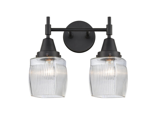 Colton - 2 Light - 15 inch - Matte Black - Clear Halophane Shade - Bath Vanity LightDetails:Product Type: Two LightsFinish: Matte BlackShade: Thick...