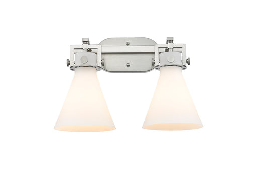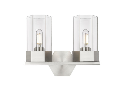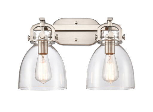 Newton Bell - 2 Light - 17 inch - Brushed Satin Nickel - Clear Shade - Bath Vanity LightDetails:Product Type: Two LightsFinish: Brushed Satin Nicke...