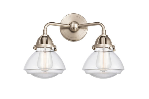 Colton - 2 Light - 14 inch - Brushed Satin Nickel - Clear Halophane Shade - Bath Vanity LightDetails:Product Type: Two LightsFinish: Brushed Satin ...