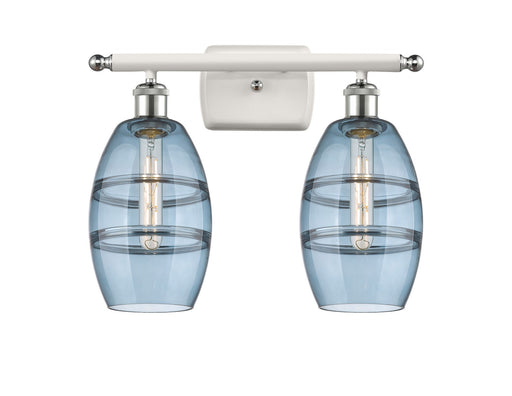Vaz - 2 Light - 16 inch - White Polished Chrome - Blue Shade - Bath Vanity LightDetails:Product Type: Two LightsFinish: White Polished ChromeShade:...
