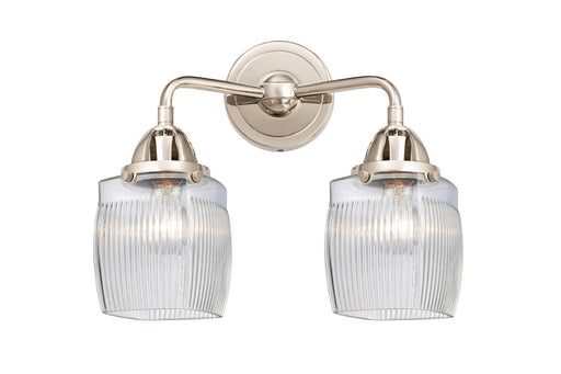 Colton - 2 Light - 14 inch - Polished Nickel - Clear Halophane Shade - Bath Vanity LightDetails:Product Type: Two LightsFinish: Polished NickelShad...