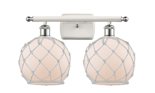 Farmhouse Rope - 2 Light - 18 inch - White Polished Chrome - White Glass with White Rope Shade - Bath Vanity LightDetails:Product Type: Two LightsF...