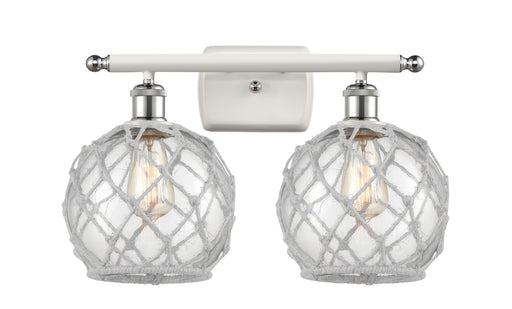Farmhouse Rope - 2 Light - 18 inch - White Polished Chrome - Clear Glass with White Rope Shade - Bath Vanity LightDetails:Product Type: Two LightsF...